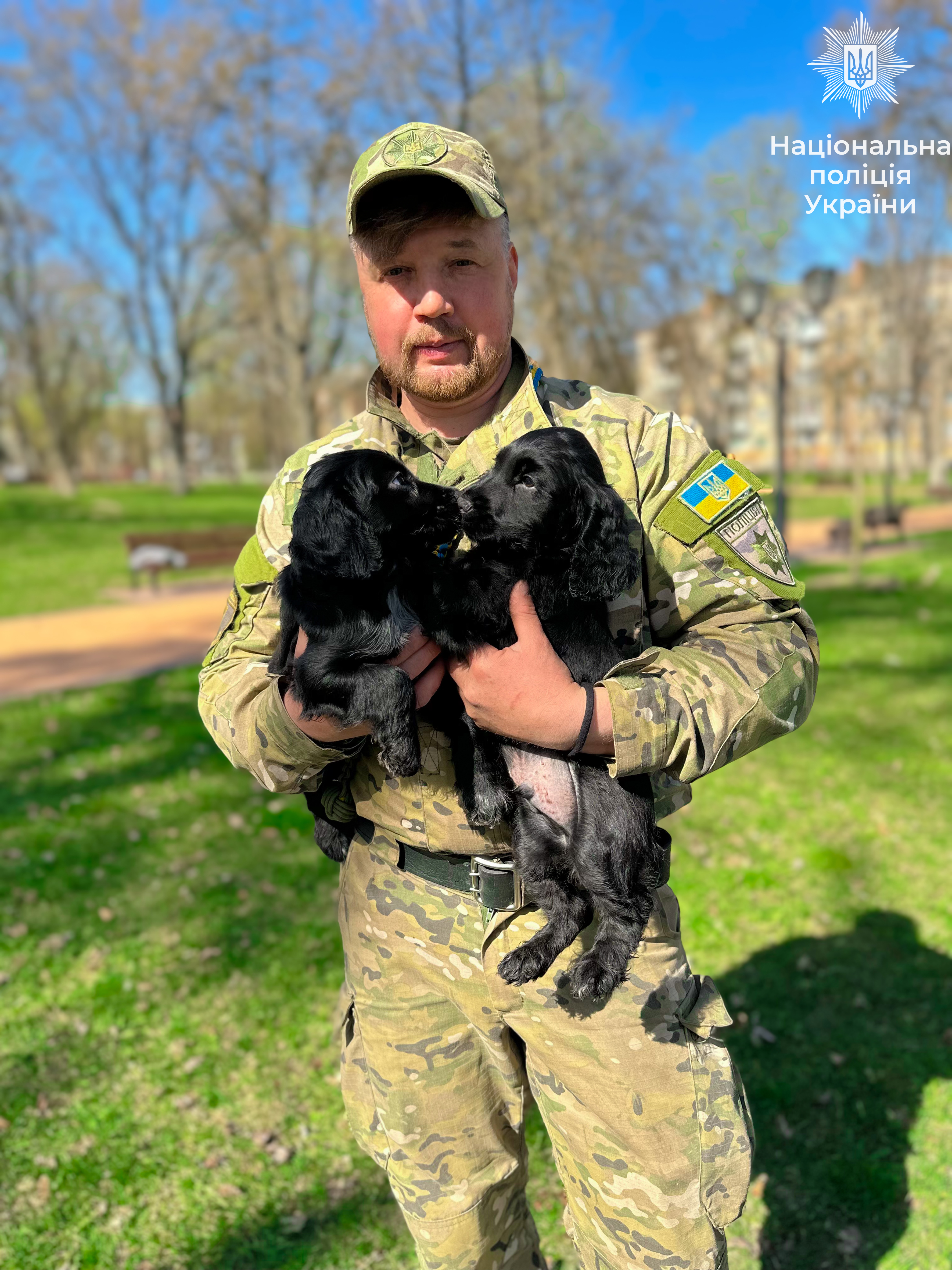 Невгамовні і грайливі спанієлі нещодавно з’явилися у кінологічному центрі Головного управління Нацполіції в області. Кінологи назвали цуценят Гільза та Дрон і вже проводять з ними перші заняття в ігровій формі.