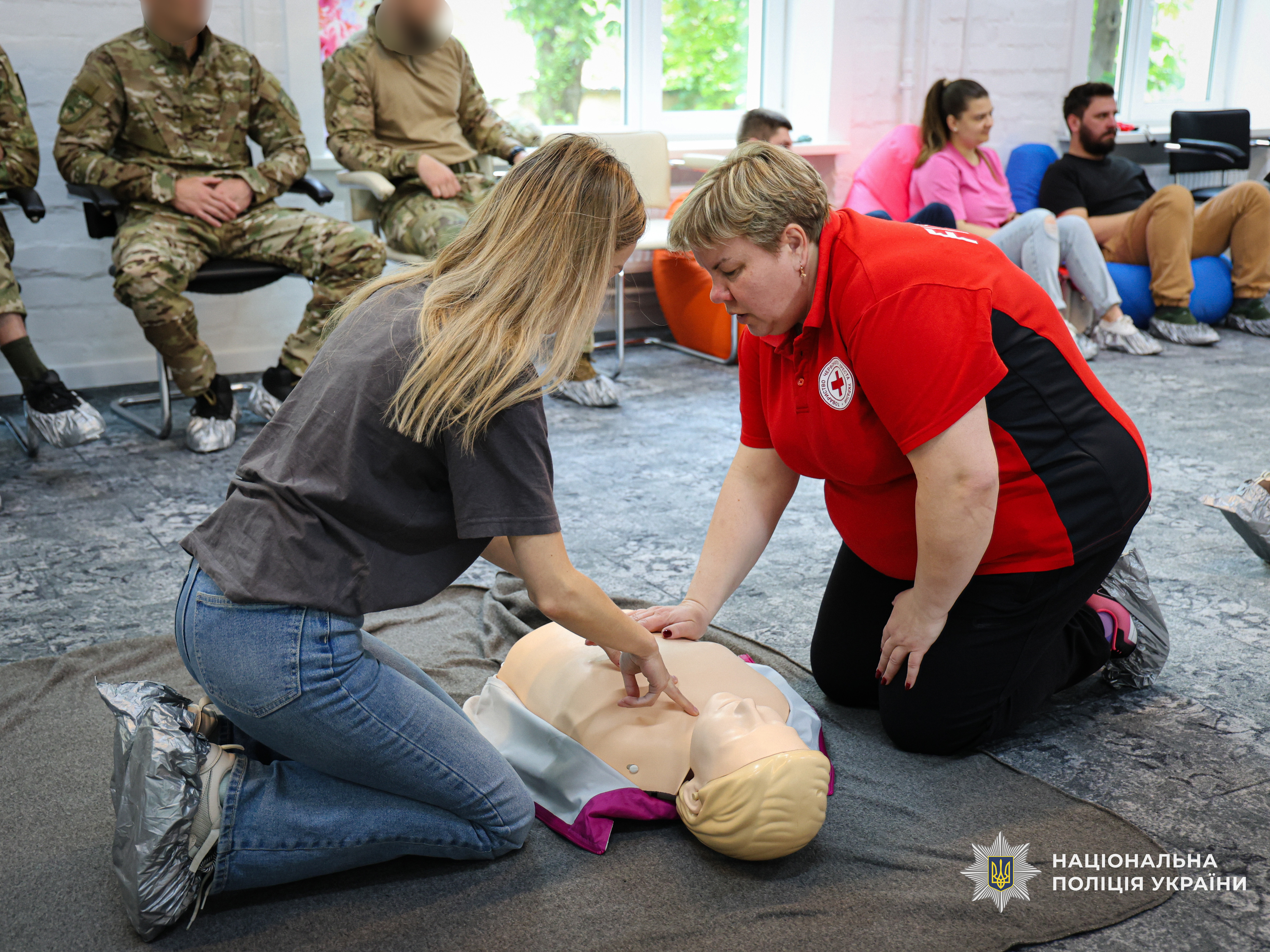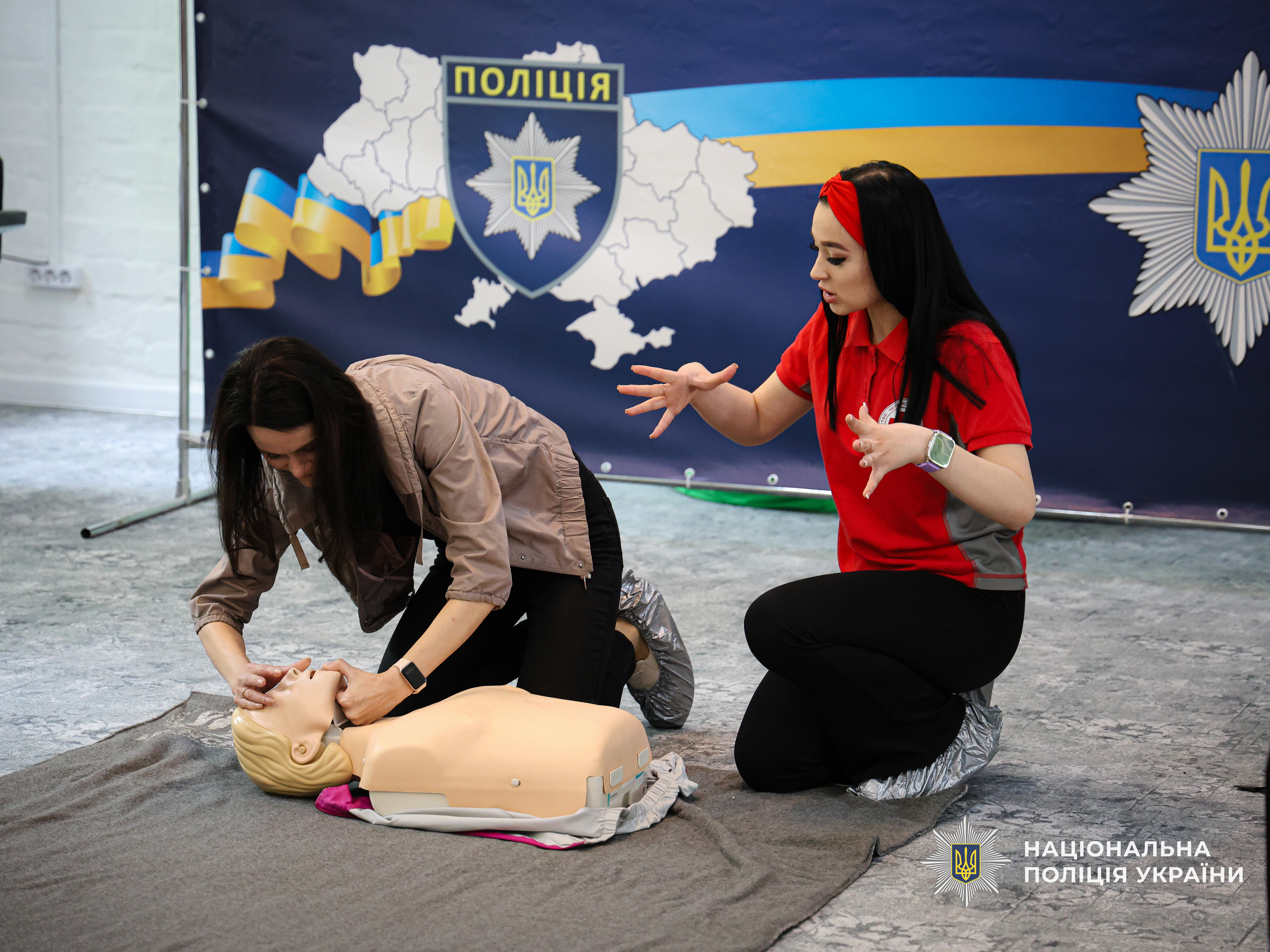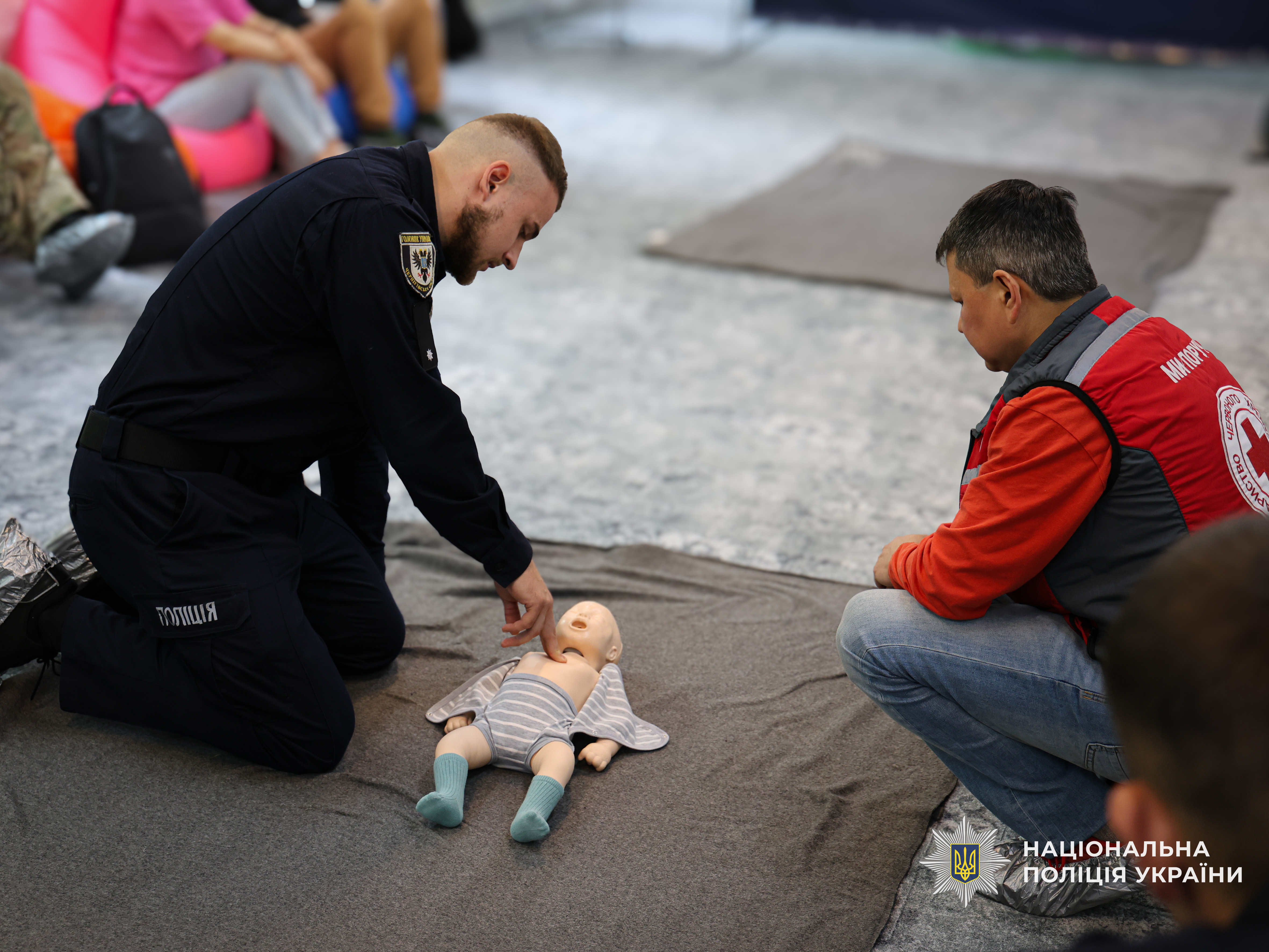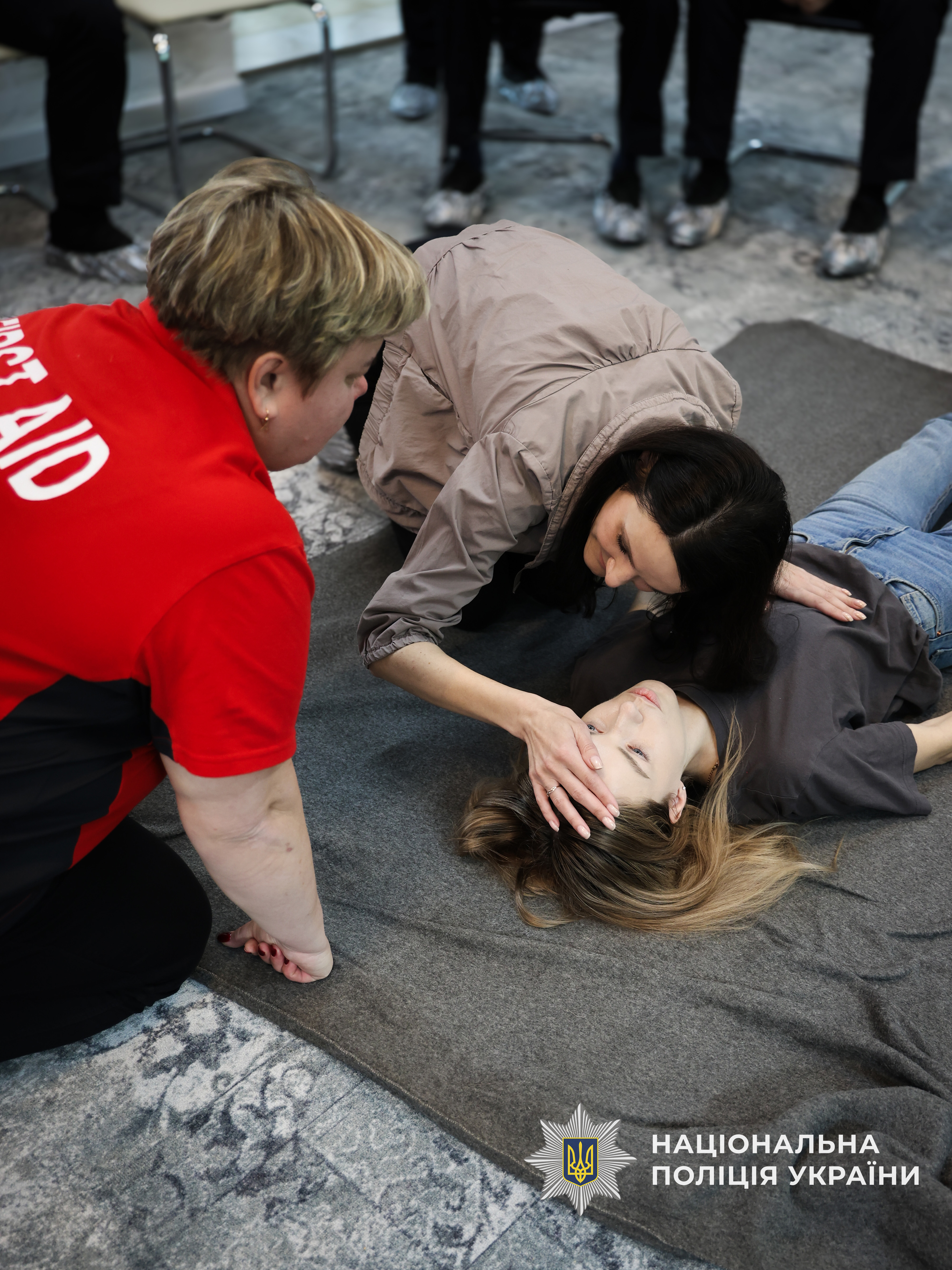 Учасники ознайомилися з основами надання першої домедичної допомоги, алгоритмами дій у надзвичайних ситуаціях та відпрацювали базові навички надання допомоги до прибуття медиків.